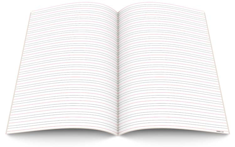 These books are handwriting lines with or without margin across both pages. They are two colour lines, one aimed at infants (21/6mm with Blue cover) and one aimed at juniors (16/4mm with Red cover). The books have 64 pages and a prechosen coloured cover that cannot be changed. If you wish to amend the cover or anything about the book, please see the bespoke book sections of the website.